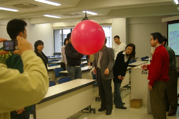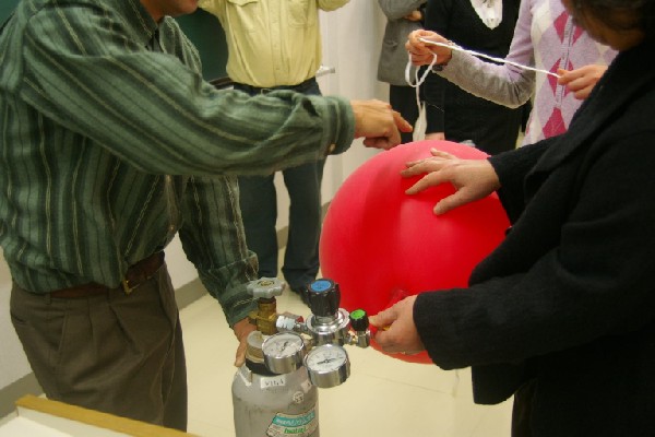 ■ヘリウムガスを風船に充填し、直径70cm程度の気球にする。