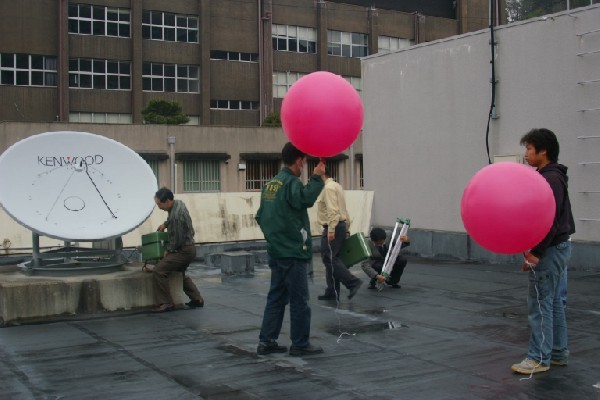 ■ パイロットバルーン観測とは、風船にヘリウムガスを充填し、飛翔させ、これを 経緯儀にて方位角、高度角を測定し、気球の速度、到達距離、等を 求めるものです。浮力の設定の程度により、気球の上昇速度が変わ ります。 ■ 筆者は、2007年03月24日、関西気象予報士会京都部会主催の 「パイロットバルーン観測勉強会」に出席し、観測を実地見学した ので、その様子を写真で紹介します。