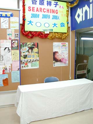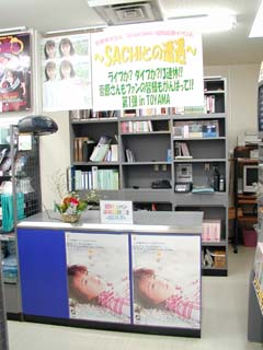 一通り歩き廻って見るもの無くなったので一旦退散。 土産物と昼飯を探しながら駅周辺の店をぶらつく。 番組名は忘れたけど秋田放送にさっちゃんが生出演するとの情報を聞いてたのでラジオを聴きながら… しかし流石は地元,ビルの中でもちゃんと受信出来てる。感激物だなぁ。 結局昼飯は軽くミソラーメン+ライスで済ます。(本当は特産物食べたかったけど量的に多くなりそうで^^;) 食事済まして再びラジオ点けて駅に戻ると・・・ラジオからさっちゃんの歌が?! 慌てて電波状態良い所へ移動,時計を確認。12時丁度。生出演ってこれかぁ〜 出番は30分。歌3曲に司会者とのトーク。 内容は自己紹介。今日のイベントの事。声優としての演技の事。秋田は父親の実家があって親戚が沢山居るとか・・・等。 チョッチャ宛の葉書を一枚強奪してきて読んでもいたなぁ(笑) 出番が終了してから再び会場へ。 さすがに今度は数人イベント待ちの人が居るようだ。 テーブル付近で待ってようかと思ったけど寒いので店内で色々眺めて待つ事に。 ・・・って色々余計な物も発見しちまうし(イベント後で買っていくか・・・)