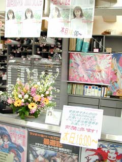 そこを奥に行くと本当の店内。そんでもってその入り口付近にテーブルが置いてあって上にはイベント看板が・・・ここでやるらしい。 イベント目的らしい人はまだ来てないようだ・・・ 取り敢えず店内を見回る。関東と売れすぎが違うのか関東じゃ見た事無いものが結構あったりして・・・ あぁっ!くるみDVD2巻だだだだぁ!! どうしよぉかなぁ・・・LDの方を買いたいから避けたいなぁ・・・ って・・「ストラップ付き」!!!! 購入(死)