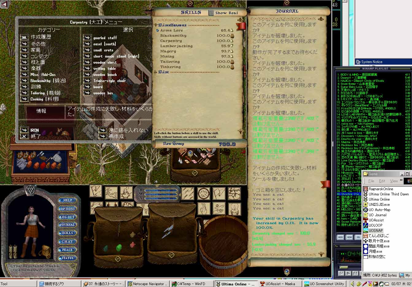 しょうがなく強制ジャンプのオプション使って脱出…もうまく動作してくれなかったので 別のヤング専用メニュー使って脱出…こんなのあったんだねぇ。 私がUO始めた頃にはこんな仕組み無かったから知らなかったよ^^;