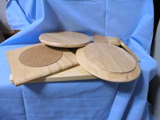 木製ベース沢山@100円ショップ ・・・実はこれは全部食器です。 ゴムの木の木材で作られた、まな板に皿にコースターに・・・ ひっくり返すと丁度良く模型用のディスプレイベースになるんですよね。 ちゃんとしたのを買うと一個1,500円はするんで、かなりお得ですよ。