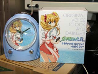 その後は高円寺で肉の会。 野菜の高騰の影響で焼き野菜類や前菜類がかなり厳しそうな感じでした(汗) 帰宅すると、発送が遅れに遅れていた「大空寺あゆボイスクロック」がようやく到着してました。 (製造の遅れもあるようですが台風の影響で船便が足止めされまくってたそうだ)