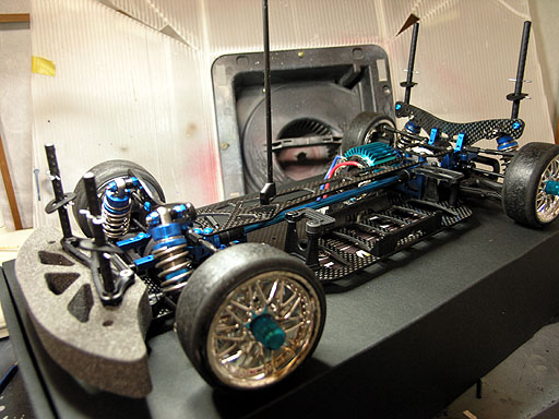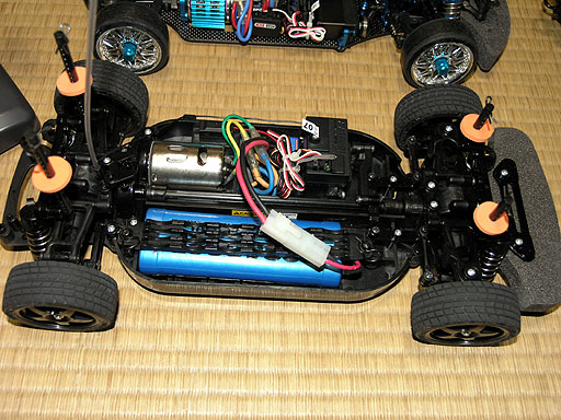 午前中は先日ブラシレスモーターに換装したタムギアポルシェを走行させてみました。 もう笑っちゃうくらい直線が速くなりましたよ(笑) 停止状態からいきなり最大加速を掛けるとホイルスピンはするわ、定常円ドリフトはするわでまともに走れません。 徐々にスロットルを開けていって最大速度まで持っていくと・・・今度は止れません(笑) ブレーキをかけてもスピンしながらそのままのベクトルを保持して進行方向にすっ飛んでいきます(爆)