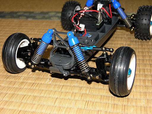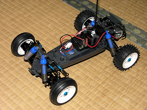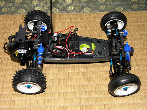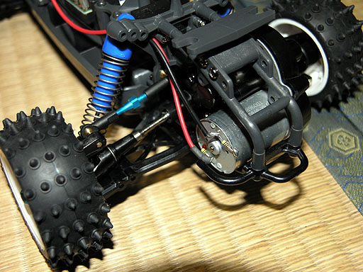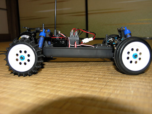 ノーマルのモーターだと全開でも結構曲がれるんですが、唐突に操作難易度が上がりましたよ。 ・・・って、この方が絶対面白いですけどね。 ちゃんと速度を落して曲がればきちんと曲がりますし。 ただサスペンションが柔らか過ぎるかなぁ・・・ノーマルでは気にならなかったけどパワーアップさせて車体をぶん廻す感じで動かすと沈みすぎてるって感じはありますので。